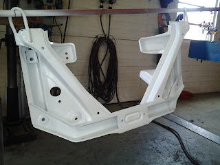 Fin röd kofångare och en front nylackade. Nu börjar det närma sig montering av detaljer och det är mkt roligare än skrapa blästra och svetsa rost...